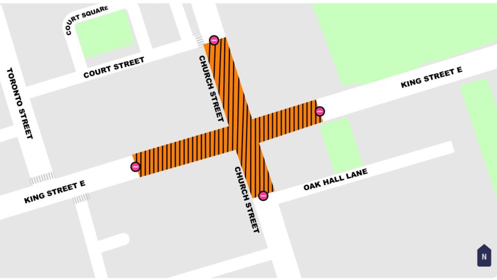 Starting Sunday, the intersection of King Street East and Church Street will be restricted to one lane in each direction at various points throughout the next 112 days as crews begin the work to replace the aging watermain.