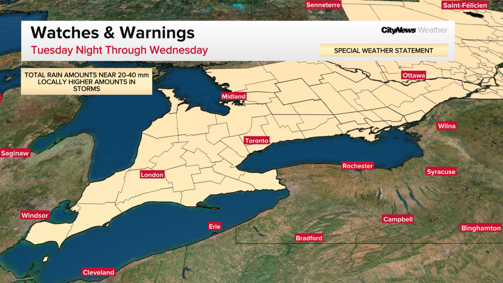 Significant rainfall across the GTA starting Tuesday night could cause flooding